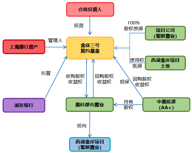 受让河南省美科都市置业有限公司合法持有的河南省军顺置业有限公司100%股权收益权,最终用于西湖金岸项目的高端人才公寓建设。
