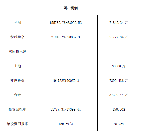4.项目利润测算